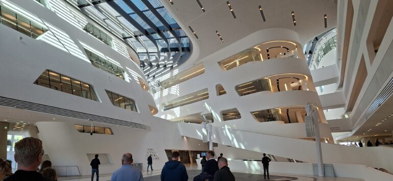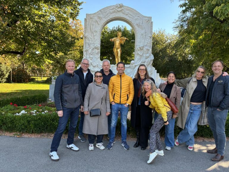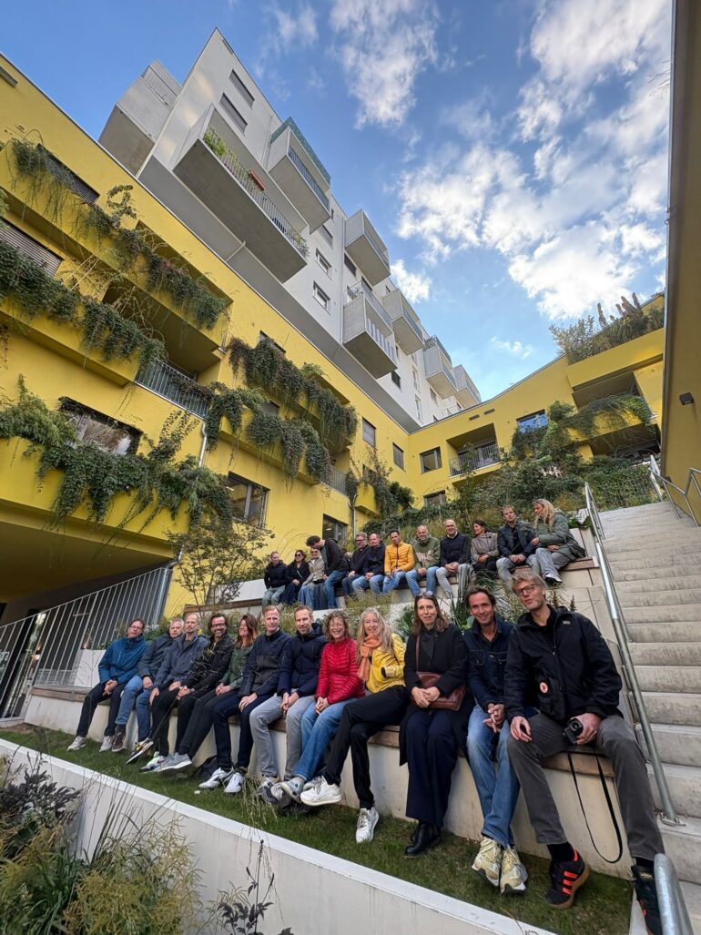De tweede dag stond in het teken van een intensief maar boeiend programma. In het indrukwekkende, klassieke stadhuis kregen we uitleg over de stedelijke plannen van Wenen. De stad groeit in rap tempo van 2 naar 2,2 miljoen inwoners, waarbij kwaliteit van leven en leefbaarheid centraal blijven staan. ’s Middags bezochten we de campus van de Universiteit van Wenen, waar het gehele gebied in één bouwstroom werd gerealiseerd. Pas toen álles – gebouwen én openbare ruimte – volledig klaar was, ging de campus open voor het publiek, een aanpak die wij niet kennen. Ook de Ikea-vestiging in het centrum stond op het programma. Op het dak is een openbaar gebied ingericht met zitplekken, een kiosk met drankjes en schitterende vergezichten – een creatieve manier om stedelijke ruimte optimaal te benutten.